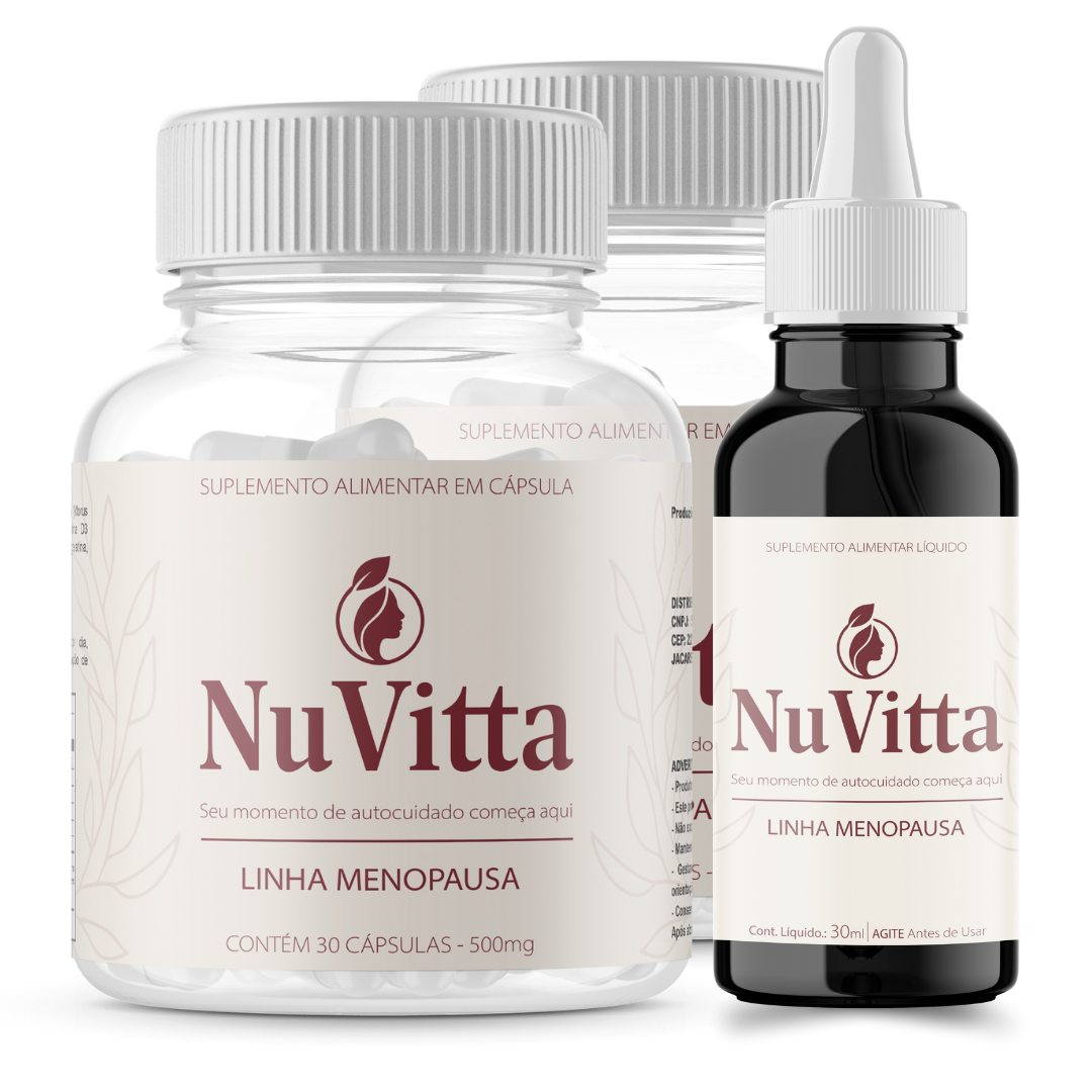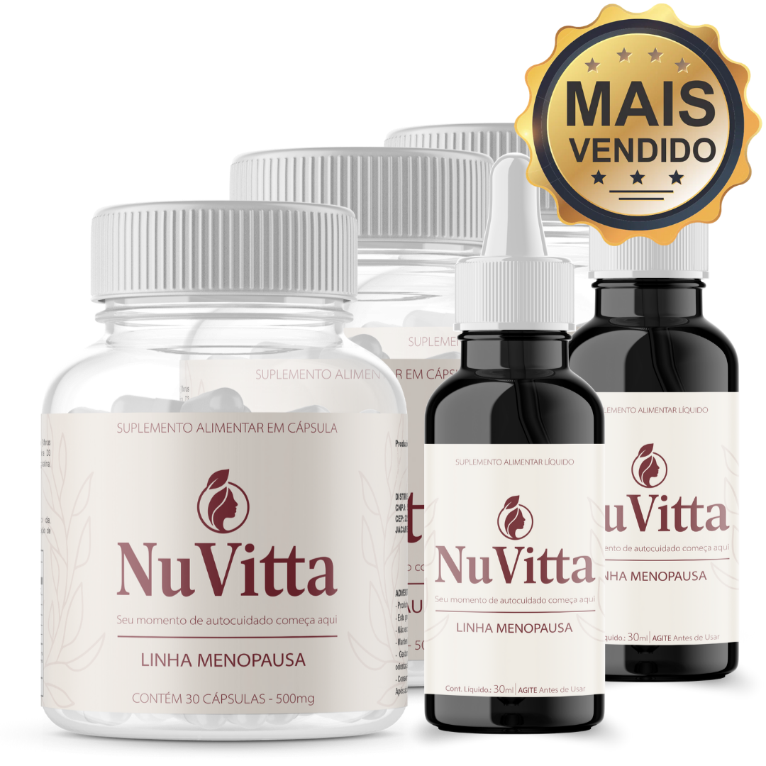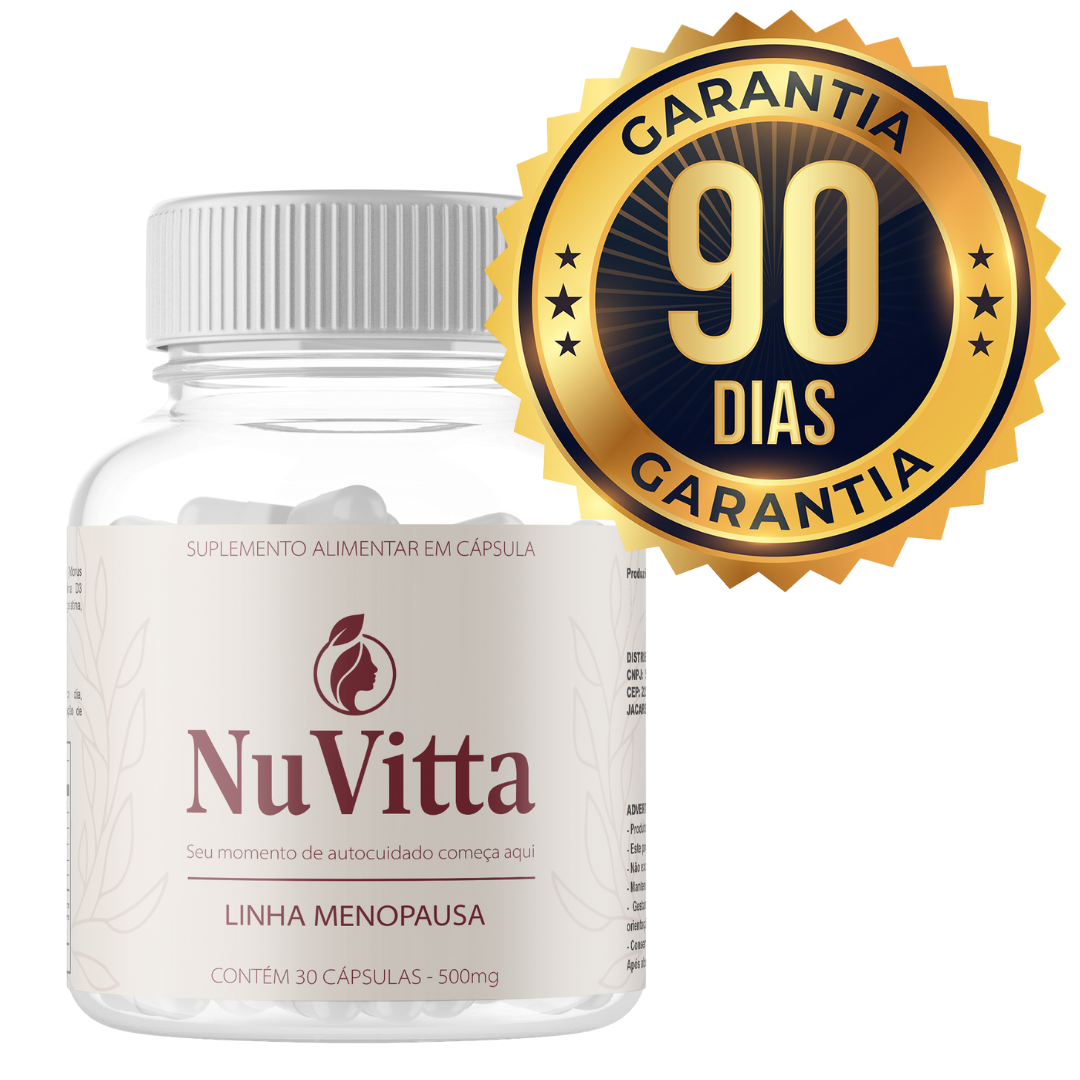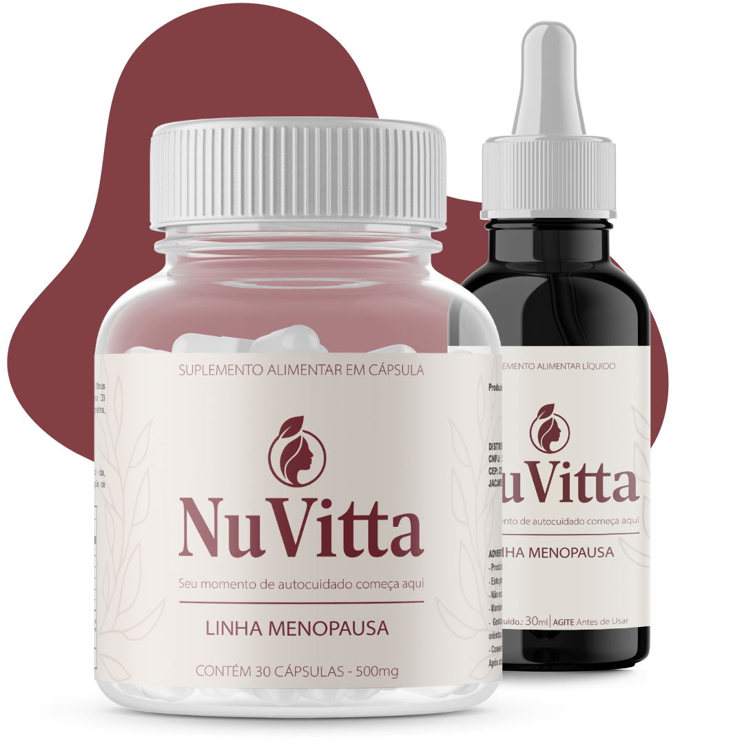 “O NuVitta combina ativos naturais em uma fórmula avançada, desenvolvida para ajudar você a equilibrar seu corpo, aliviar os sintomas da menopausa e reconquistar seu bem-estar, de forma segura e sem hormônios sintéticos. Com uma composição cuidadosamente pensada para atuar em duas frentes essenciais — equilíbrio hormonal e saúde emocional — o NuVitta contribui para uma menopausa mais tranquila, leve e cheia de vitalidade. É a solução ideal para quem busca alívio natural, sem abrir mão da qualidade de vida.”